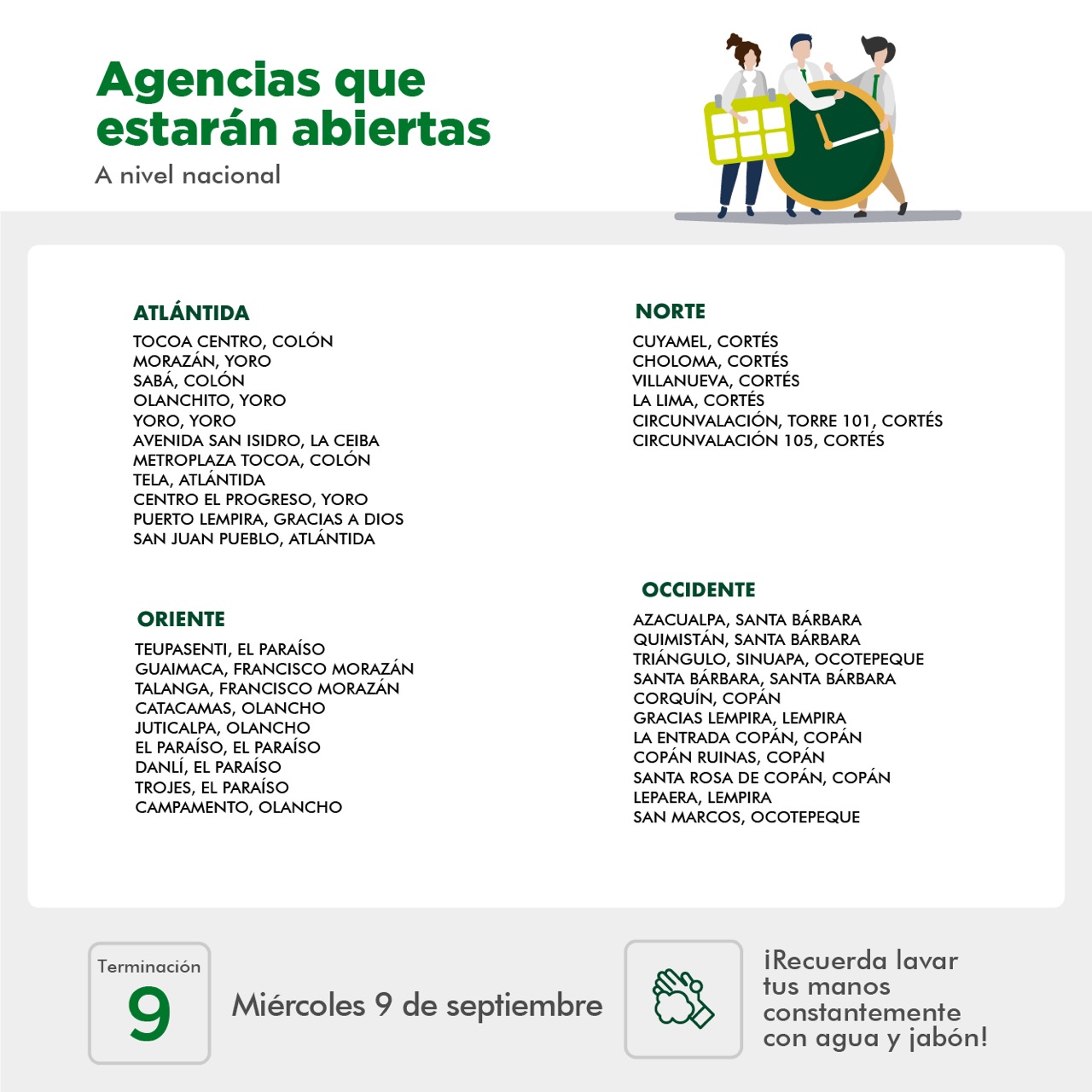09 Sep BANRURAL INFORMA – Agencias abiertas el 9 de septiembre Posted at 09:29h in Comunicados, Noticias by Banrural Share
